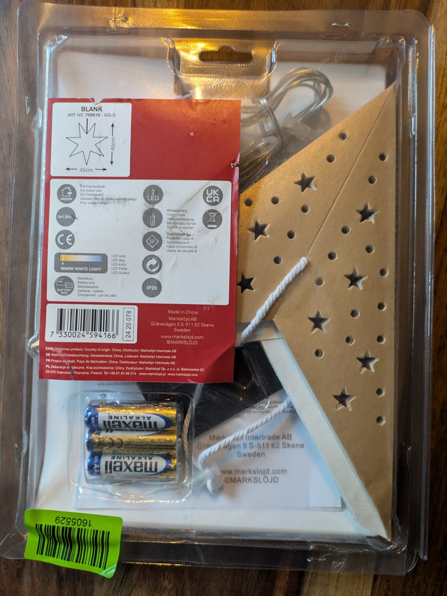 • Stromversorgung: 3x AA-Batterien (inklusive)