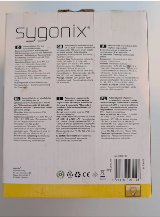 1. sygonix Solar-Wandleuchte